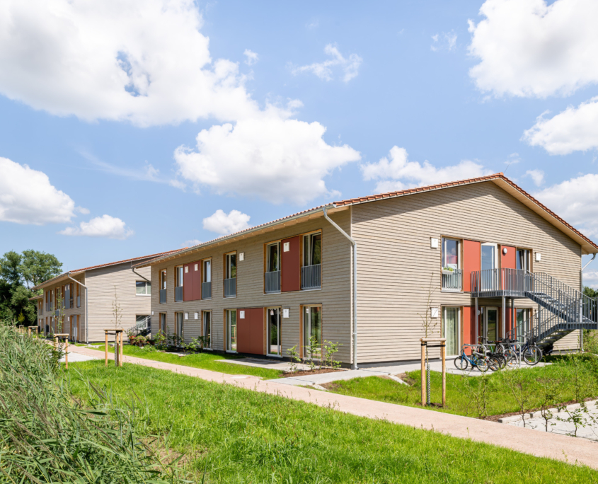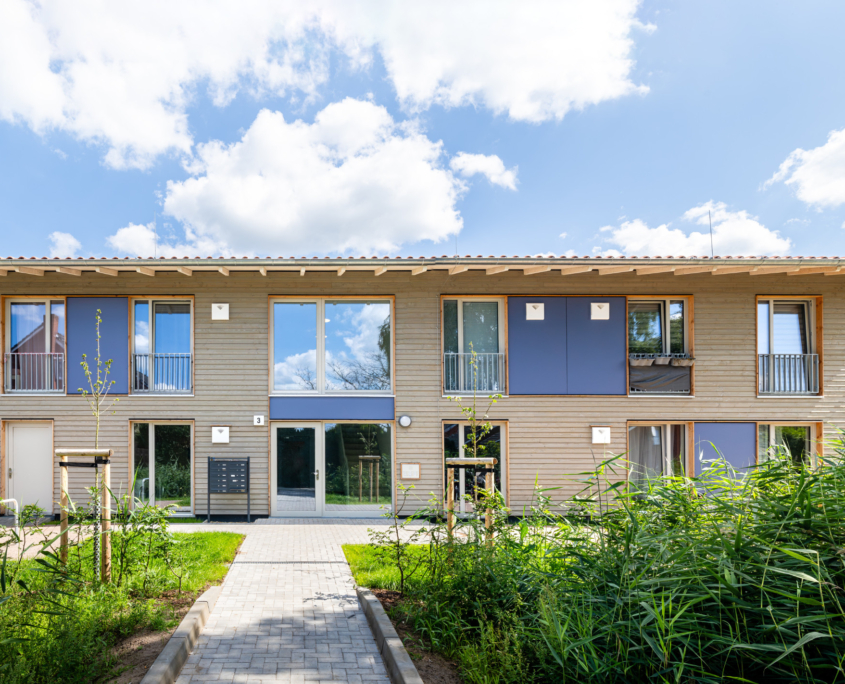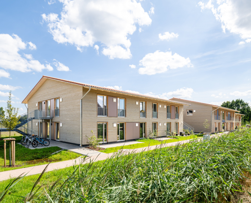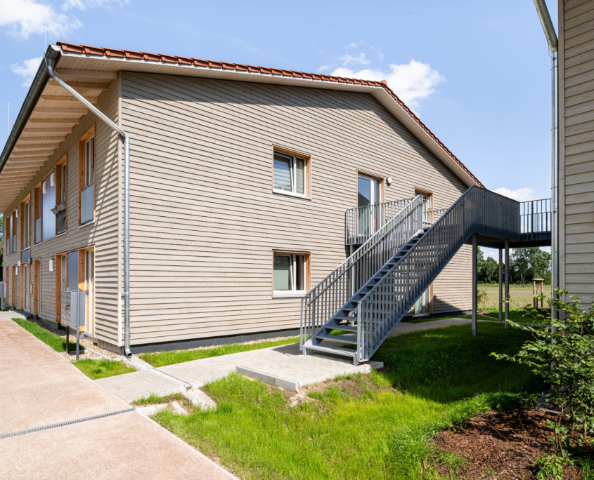 Bei den Neubauten „Wohnraum für Geflüchtete“ Hagebuttenweg in Winsen (Luhe) handelt es sich um drei überwiegend baugleiche, nicht unterkellerte Mehrfamilienhäuser. Die zweigeschossigen Baukörper bieten eine Fläche für insgesamt 34 Wohneinheiten mit Ein- bis Dreizimmerwohnungen.